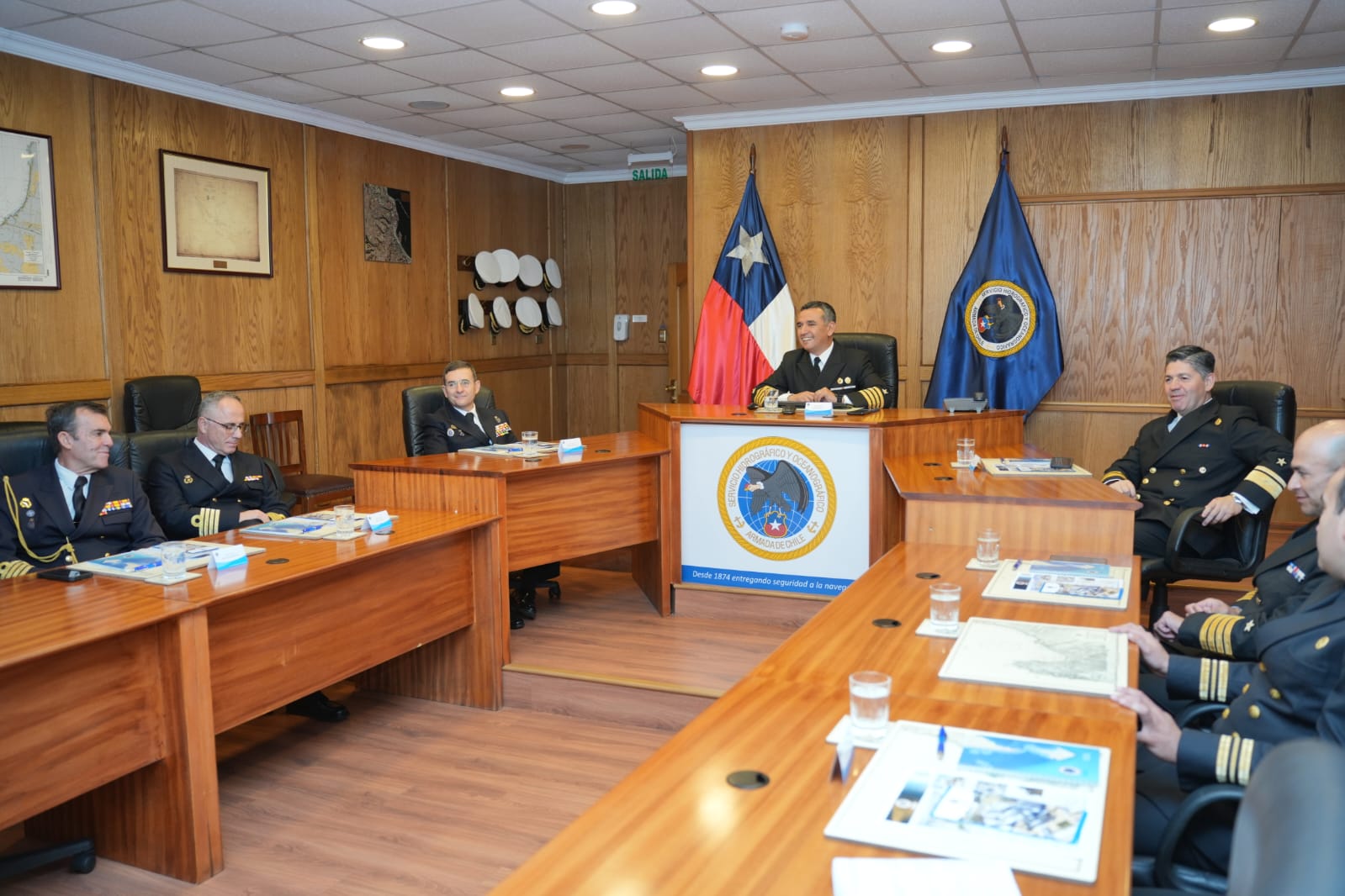 La jornada continuó con una visita al Servicio Hidrográfico y Oceanográfico de la Armada, la que al finalizar fue seguida por una visita a la Escuela Naval, donde asistieron a una exposición sobre el Sistema de Educación Naval.