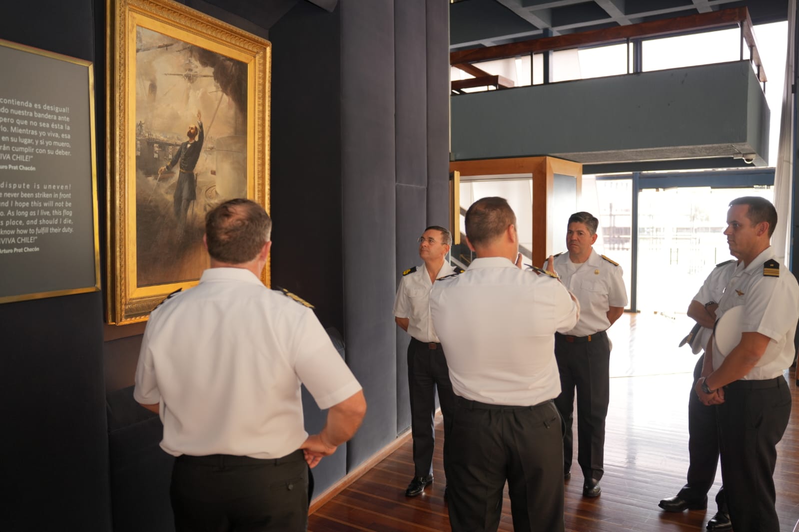 La comitiva española que fue acompañada por el Agregado de Defensa, Militar, Naval y Aéreo en Chile, Capitán de Navío, Juan Luis Benavides Sierra, comenzó sus actividades el martes 9 de diciembre con los saludos protocolares al Director General del Personal de la Armada, Vicealmirante Mauricio Arenas Menares, tras lo cual, la comitiva se desplazó hasta el edificio Armada de Chile, para presentar sus saludos protocolares al Jefe del Estado Mayor General de la Armada, Vicealmirante Raúl Zamorano Goñi. Posteriormente se trasladaron hasta el Monumento a los Héroes de Iquique y Cripta donde descansan los restos de Prat y sus hombres, donde realizaron una visita guiada.